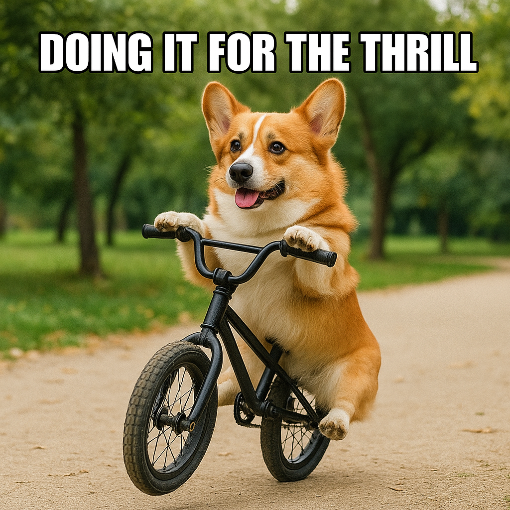 Riley is the ultimate thrill-seeker with four short legs and zero fear! Today’s adventure? Pulling off a perfect wheelie on a BMX bike like a pro. With the wind in his fur and a sparkle of pure excitement in his eyes, Riley proves that you don’t need long legs to live life in the fast lane.