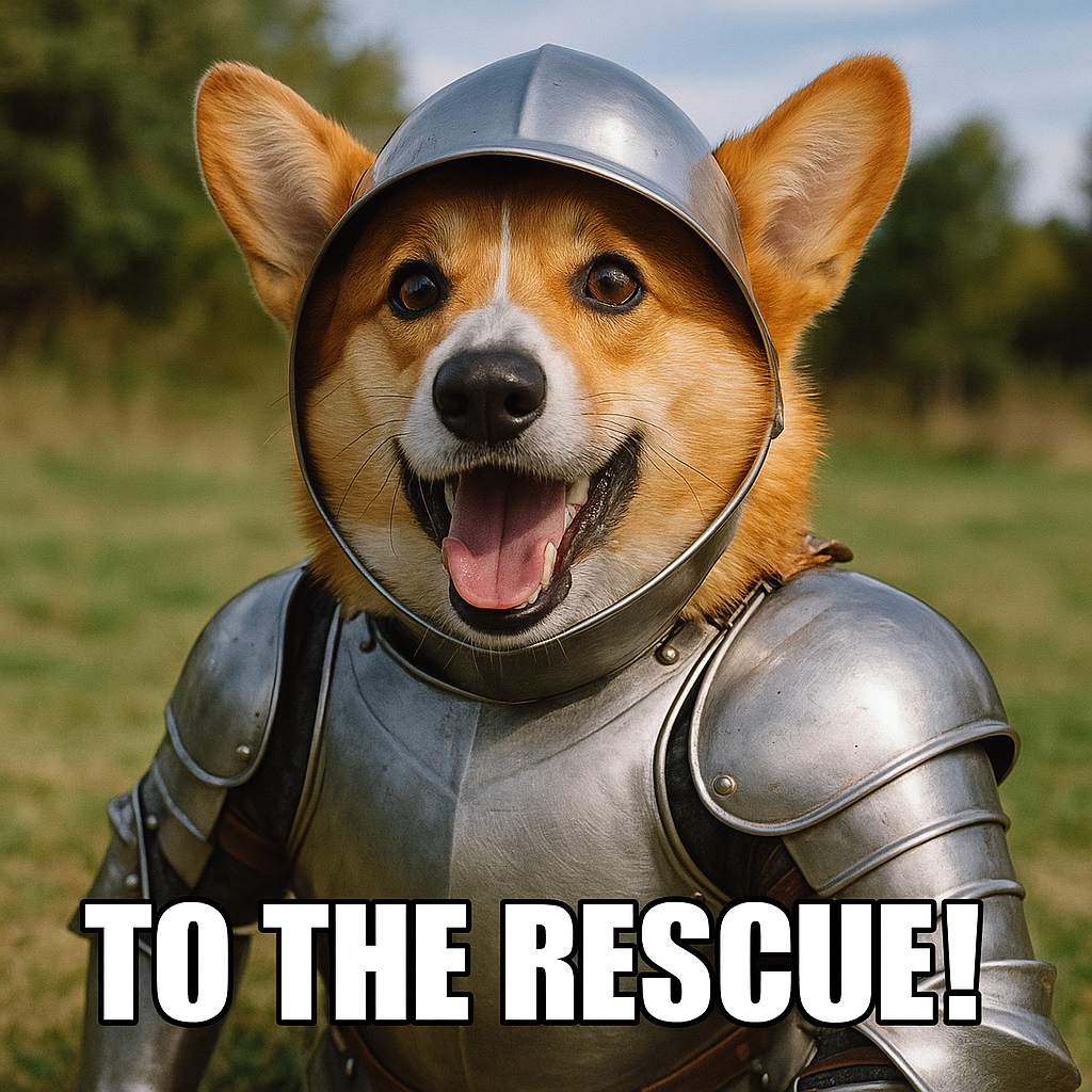 Meet Sir Toby, today’s pint-sized hero in shining armor! This fearless little knight isn’t afraid to take on the biggest adventures—whether it’s guarding the living room from the vacuum dragon or rescuing snacks from under the couch. With his gleaming metal suit and that unstoppable corgi smile, Toby proves that courage comes in all sizes. The soft sunlight and green fields behind him only make his brave stance more legendary. Who knew a corgi could look this noble? Every wag of his tail is a battle cry of joy and bravery. Sir Toby, the Knight of Snacks, has arrived!