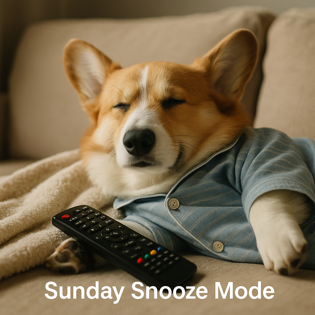 Some heroes wear capes, but the real weekend legend wears pajamas and hogs the couch. Today’s star is Milo, a corgi who has fully committed to the sacred art of the Sunday snooze. Remote in paw, blanket perfectly arranged, eyes gently closed — this is peak “do not disturb” energy.